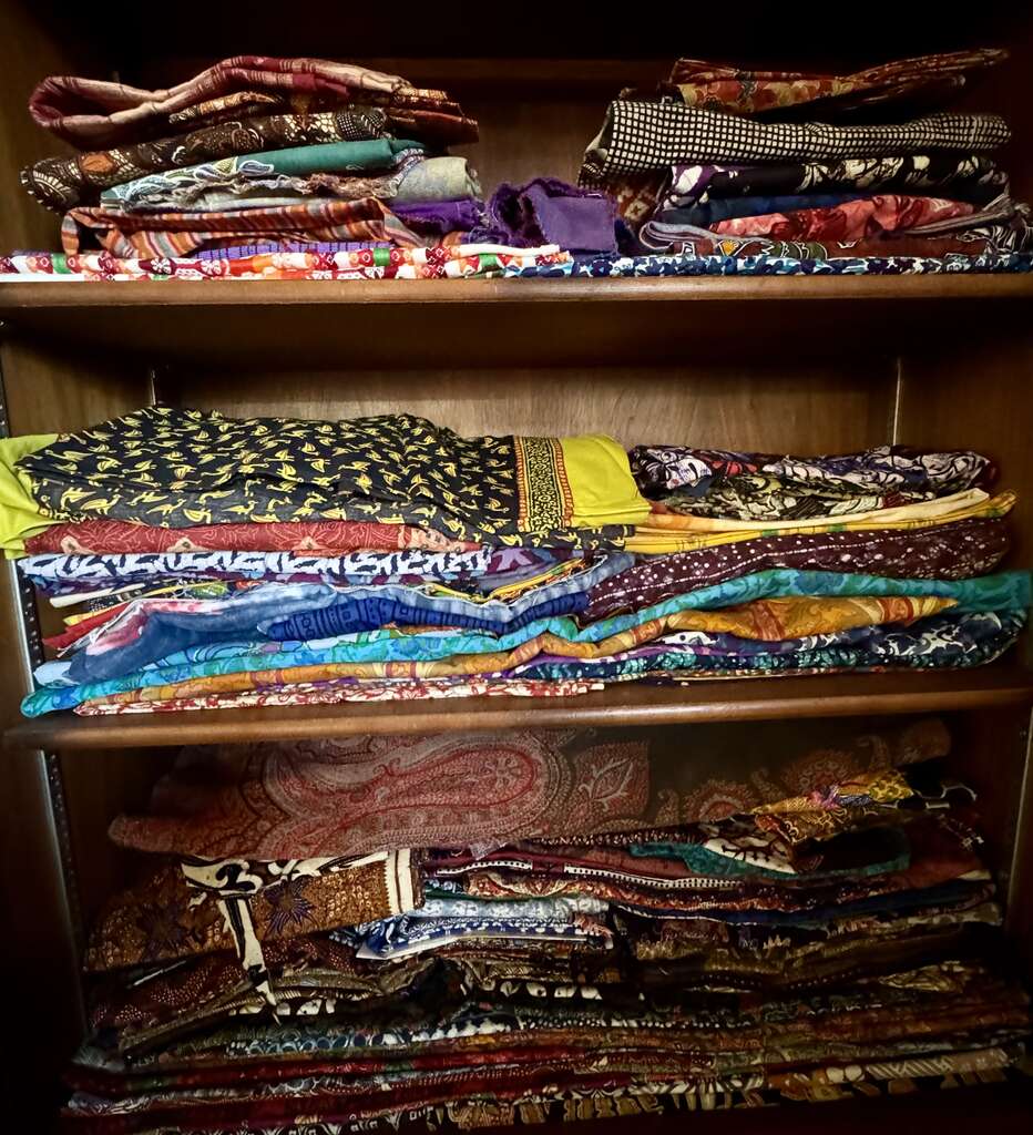 The items in this sale are from the personal collection of Judith Reynolds, a collector who lived in Albuqerque for over 50 years, amassing an impressive assortment of fine fabrics and supplies before passing away in 2024. The sale will be run by Judith's friends.